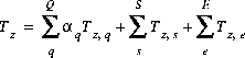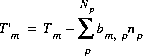 for the aqueous species in the diffuse layer of surface s. The number of moles of element, m, per mole of each entity is represented by bm, with an additional subscript to define the relevant entity;
