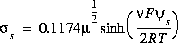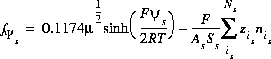 is the charge density for surface s in coulombs per square meter (C/m2), F is the Faraday constant in coulomb per mole (96,485 C/mol), As is the specific area of the surface material (m2/g), and Ss is the mass of surface material (g). At 25oC, the surface-charge density is related to the electrical potential at the surface by the following equation involving the hyperbolic sine: