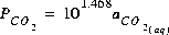 The Henry's law constant relates the partial pressure of the gas component to the activity of aqueous species. For carbon dioxide, the Henry's law constant is 10-1.468, and the following mass-action equation obtains at equilibrium: