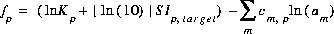 may be positive or negative. For PHREEQC, terms on the left-hand side of a dissolution reaction are assigned negative coefficients and terms on the right-hand side are assigned positive coefficients. The saturation index for the mineral, SIp, is defined to be