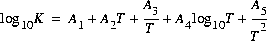 - A1, A2, A3, A4, A5--Five values defining log K as a function of temperature in the expression